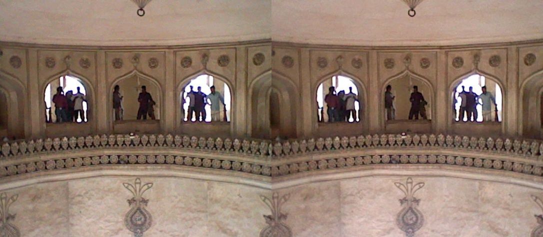 /Looking across the inner balconies.